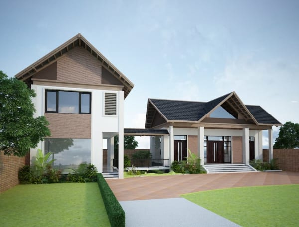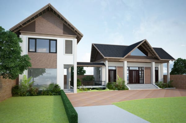 Dự án được xây dựng trên khuôn đất rộng 384m2 với diện tích xây dựng là 128m2. Về kết cấu, dự án được chia làm 2 gian với tổng diện tích sàn là 184.3m2. Tổng quan thiết kế căn nhà được cách tân từ phong cách thiết kế truyền thống. Vẻ đẹp truyền thống xen lẫn nét hiện đại khiến kiến trúc mang nét độc đáo, hấp dẫn.